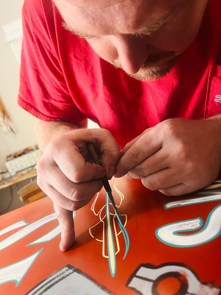I even took up the art of Pinstriping -which, funny reason I got into Pinstriping in the first place, was because I couldn’t afford to pay anyone to paint my 1930 Model A!